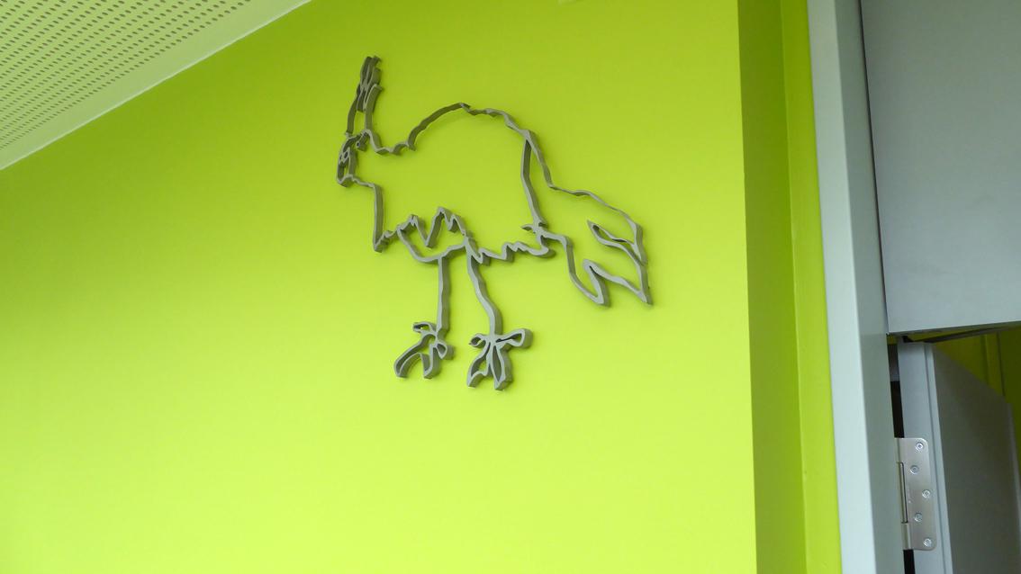 Die Künstlerin wurde an der Staatlichen Akademie der Bildenden Künste Karlsruhe zwischen 1997 und 2003 ausgebildet. Sie beendete ihr Studium als Meisterschülerin bei Prof. Stephan Balkenhol. Für die Grundschule am Wasserturm entwarf und verwirklichte sie ‚Acht Figurinen‘, die in einem den Gegenstand abstrahierenden Erzählstil in Wasserstrahltechnik aus 15 mm starken Stahlplatten herausgeschnitten wurden. Als künstlerische Installation sind die einzelnen Reliefs auf verschiedene Räume der Schule verteilt. Die Maße und Ausrichtungen der Einzelwerke sind unterschiedlich, das kleinste Maß ist ca. 20/12 cm, das größte ca. 45/300 cm.