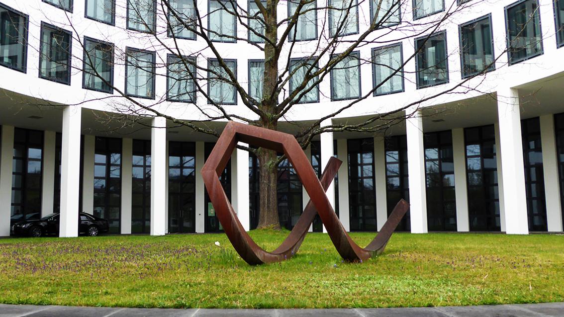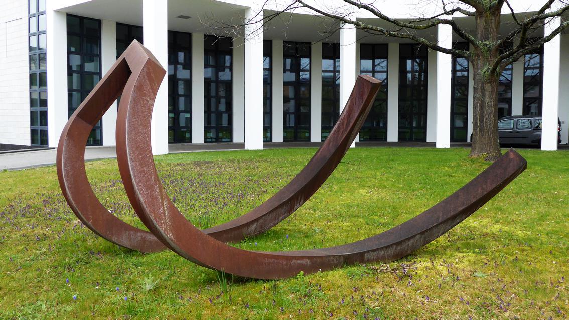 Das Kunstwerk stand seit 1987 im Gartenbereich des Prinz-Max-Palais und wurde im Jahre 2004 als Dauerleihgabe der Stadt Karlsruhe im Innenbereich der Bundesanwaltschaft aufgestellt. Eine Vierkantform bildet eine raumgreifende plastische 'Linie' mit klarer Ausrichtung. Die Stahlskulptur ist ein ungegenständlicher Beitrag zum Thema Balance und zugleich ein in Schwingung versetztes, zeichenhaft vereinfachtes Haus. Das Werk des ehemaligen Kunstprofessors, der an der Staatlichen Akademie der Bildendenden Künste in Karlsruhe und Stuttgart lehrte, wurde mehrfach ausgezeichnet. Werner Pokorny zählt zu den wichtigsten deutschen Stahlbildhauern. Seine Plastiken sind im In- und Ausland im öffentlichen Raum vielfach vertreten. Werner Pokorny verstarb am 31. Dezember 2022.