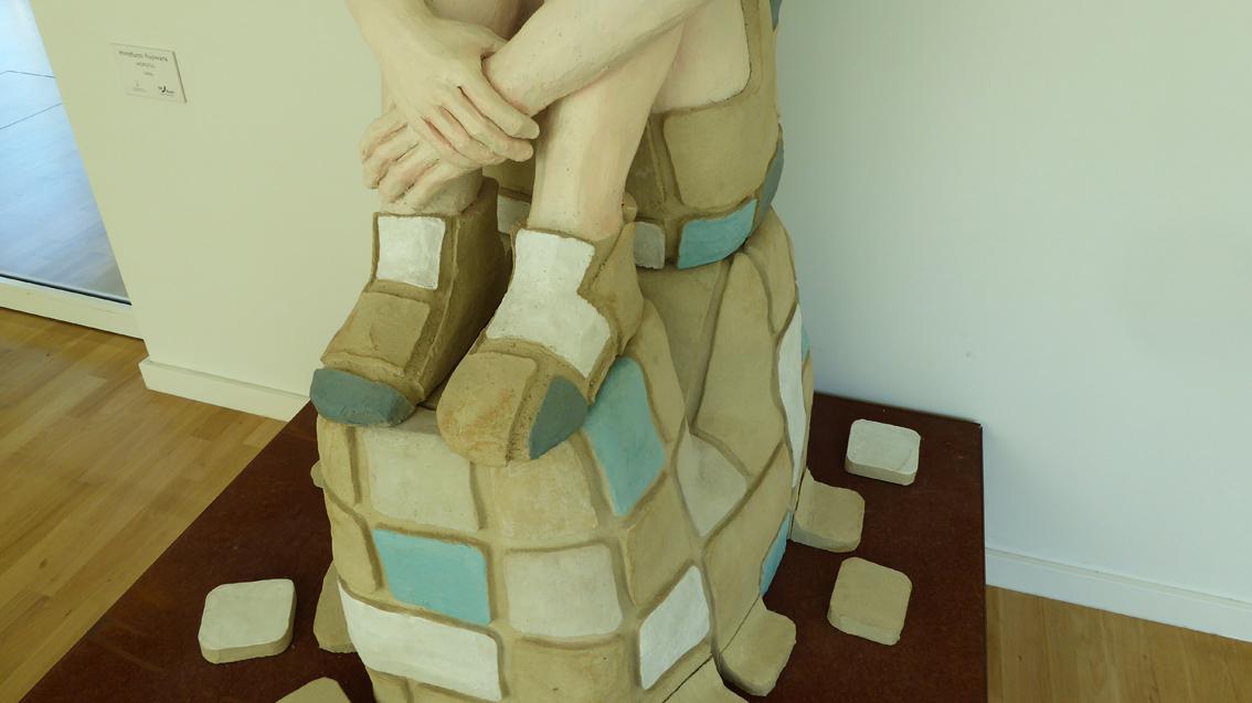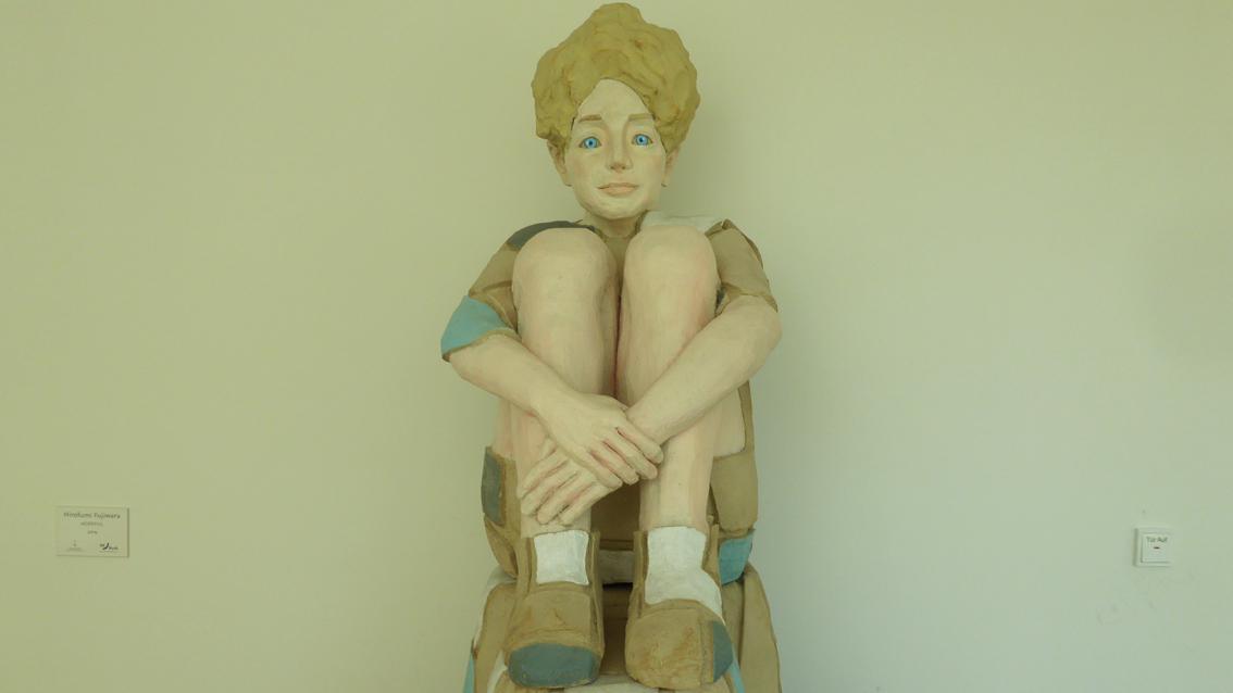 Auf einem Sockel sitzt eine androgyn wirkende Figur mit weit geöffneten Augen, die den direkten Kontakt zum Betrachter suchen. Die Körperhaltung drückt Zurückgezogenheit, der Blick dagegen Aufgeschlossenheit aus. Diesen Gegensatz verarbeitet der Künstler mit japanischen Wurzeln zu einer plastischen Form, bei der sich unterschiedlich große Tonquader, in Verbindung mit naturalistischen Ausarbeitungen, zur Plastik ‚Hopeful‘ fügen. Das Werk entstand in enger Zusammenarbeit mit der Staatlichen Majolika Manufaktur Karlsruhe. Hirofumi Fujiwara wurde 1984 in Hiroshima/Japan geboren und studierte von 2010 bis 2015 an der Staatlichen Akademie der Bildenden Künste Karlsruhe bei Prof. Stephan Balkenhol.