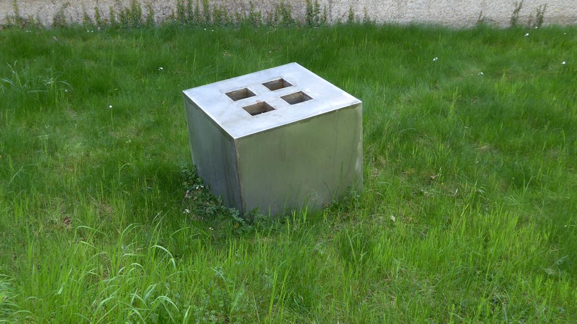 Der Künstler installierte seinen mit Vertiefungen versehenen Würfel leicht geneigt auf einer Rasenfläche vor dem Durlacher Finanzamt. Die Arbeit wurde vom Regierungspräsidium bei der damals in Durlach ansässigen Galerie Rösch erworben und dem Finanzamt als Dauerleihgabe überlassen. Als Symbole der Naturkraft waren ursprünglich Wasser, Pflanzen und Erde in die kleinen Edelstahlschächte eingelassen.