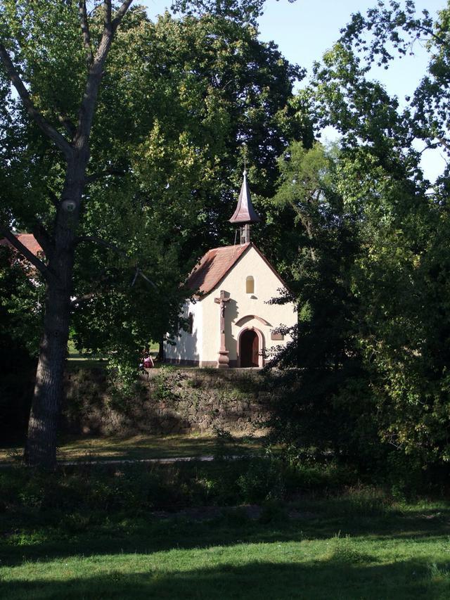 Für die Bahn von Durmersheim nach Grünwinkel, die 1890 eröffnet wurde, stellte die Kirche ein zunehmendes Verkehrshindernis dar. So sollte die Kirche 1913 abgerissen werden, doch der Brauereibesitzer Robert Sinner finanzierte den Umzug der Kapelle an das Hochufer der Alb, wo sie noch heute steht.