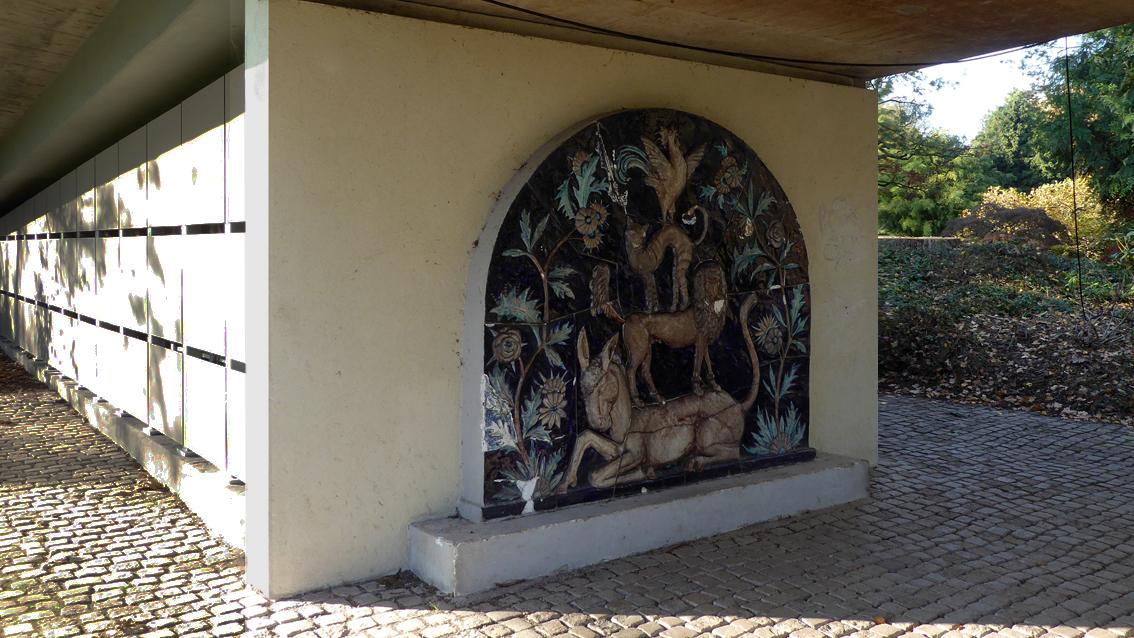 Das Relief wurde im Rahmen der städtischen Kunstförderung aus Mitteln des Sonderfonds für bedürftige Künstler finanziert und um 1922 in der Staatlichen Majolika Manufaktur Karlsruhe gefertigt. Heute befindet sich das Werk an der nördlichen Trägermauer der Karl-Brinkmann-Brücke, die über den Stadtgarten führt.
