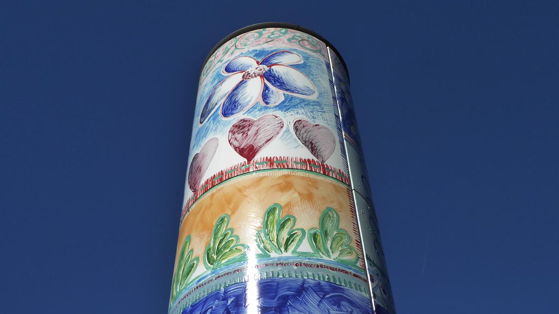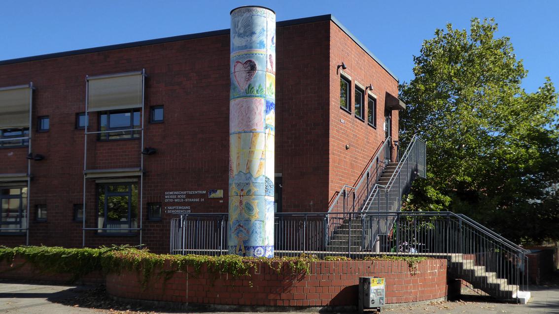 Das Künstlerpaar Barbara Jäger und OMI Riesterer ist im Karlsruher Stadtraum mehrfach vertreten. Von der Malerin und dem Bildhauer stammt unter anderem das Waldenserdenkmal in Palmbach (2015). Die Bürgersäule von 1983 vor dem Jugend- und Gemeinschaftszentrum 'Weiße Rose' in Oberreut ist ca. neun Meter hoch und hat einen Durchmesser von ca. einem Meter. Die Säule ist mit volksnahen, ortsbezogenen Motiven versehen, die in Zusammenarbeit mit Jugendlichen des Stadtteils erarbeitet und auf die 'Bürgersäule' übertragen wurden. Am Eingangsbereich erinnert eine ebenfalls von dem Künstlerpaar gestaltete Bronzeplatte an den Widerstand der studentischen Gruppe um Sophie und Hans Scholl mit dem Namen 'Weiße Rose' gegen die nationalsozialistische Willkür.