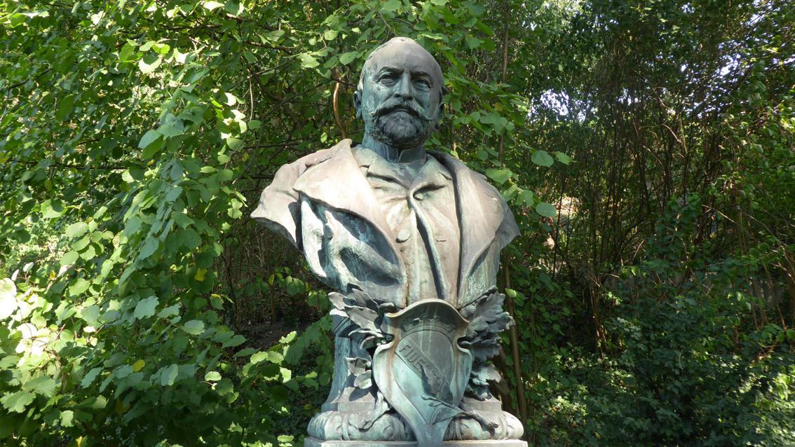 Die Bronzebüste von Hermann Volz zeigt in repräsentativer Pose Wilhelm Lauter, der als Karlsruher Bürgermeister ein großer Förderer des Zoologischen Stadtgartens war. Er ist Namensgeber des Lauterbergs, an dessen Fuß sich die Plastik befindet. Zwischen 1880 und 1919 lehrte Hermann Volz an der Staatlichen Akademie der Bildenden Künste in Karlsruhe. Er war unter anderem Lehrer von Heinrich Bauser, Hermann Föry und Emil Sutor, die ebenfalls mit Kunstwerken im Zoologischen Stadtgarten vertreten sind. Der Bildhauer wurde 1847 in Karlsruhe geboren und starb ebenda im Jahre 1941.