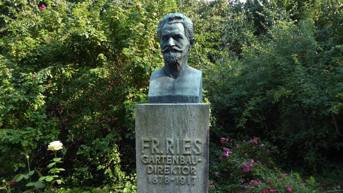 Das wirklichkeitsnah gestaltete Bildnis des städtischen Gartenbaudirektors, der ab 1884 den Stadtgarten leitete und sich um dessen Weiterentwicklung sehr verdient gemacht hatte, befindet sich auf einem von Friedrich Beichel gestalteten, hohen Sockel im westlichen Teil des Zoologischen Stadtgartens, nahe dem Rosengarten. Heinrich Bauser studierte von 1886 bis 1892 Bildhauerei an der Staatlichen Akademie der Bildenden Künste Karlsruhe bei Prof. Hermann Volz, der mit einer Porträtbüste von Wilhelm Lauter ebenfalls im Zoologischen Stadtgarten vertreten ist.