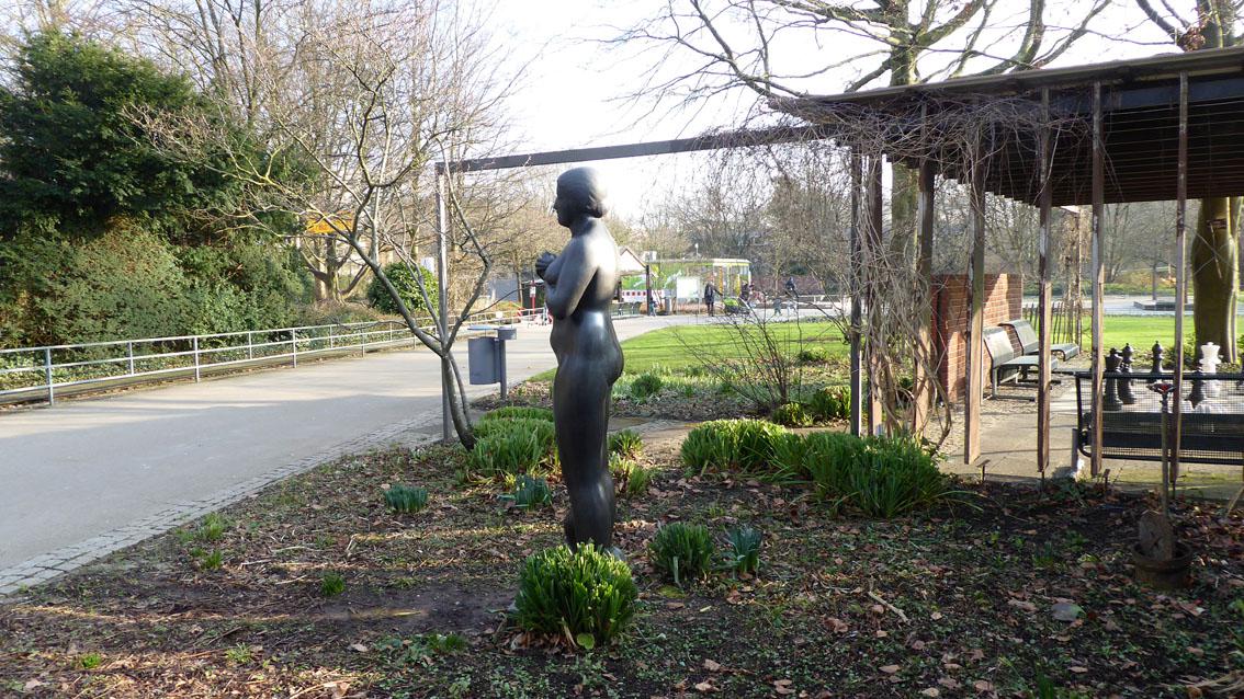Die Plastik entstand zu einer Zeit, als die Ideologie des aufkommenden Nationalsozialismus ein neues Menschenbild prägte. Die Skulptur zeigt eine junge Frau, zwischen deren Beinen eine dicke Schlange bedrohlich ihren Weg nach oben sucht. Mit einem Ausdruck von Hilflosigkeit begegnet Eva der gefährlichen Annäherung. Die Formensprache des Bildhauers orientiert sich an klassischen Vorbildern. Christoph Voll wurde 1897 in München geboren und starb 1939 in Karlsruhe. Er lehrte ab 1928 Bildhauerei an der Badischen Landeskunstschule, aus der später die Staatliche Akademie der Bildenden Künste Karlsruhe hervorging. Im Jahre 1935 wurde er zunächst 'entpflichtet', später entlassen. Nach 1937 wurde seine Kunst von den Nationalsozialisten als 'entartet‘ diffamiert.