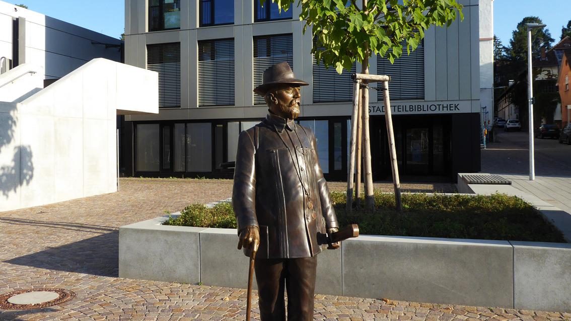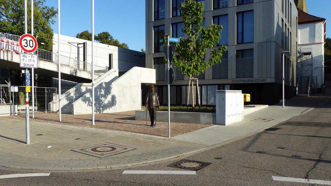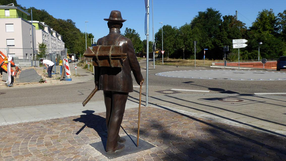 Im Jahre 2020 verwirklichte Ulrich J. Sekinger eine etwa lebensgroße Plastik, die Friedrich Kallmorgen gewidmet ist, dem Begründer der Grötzinger Malerkolonie. Der in der Tradition des französischen Impressionismus stehende Maler wurde 1856 in Altona geboren und verstarb 1924 in Grötzingen. Sekinger gibt Kallmorgen im reifen Alter wieder, ausgestattet mit Malkoffer, Staffelei und Stock. Wie aus einer vergangenen Zeit ins Hier und Heute versetzt, steht der Künstler an der Ecke Kirch- und Augustenburgstraße und schaut unbewegt dem regen Treiben in der näheren Umgebung zu. Ulrich Julius Sekinger studierte von 1973 und 1976 bei Prof. Peter Dreher an der Staatlichen Akademie der Bildenden Künste in Karlsruhe. Anschließend war er bis 1978 Meisterschüler bei Prof. Klaus Arnold, der zu dieser Zeit Rektor der Hochschule war. Ulrich Julius Sekinger gründete im Jahre 1984 mit Gleichgesinnten die Künstlervereinigung „Die Unzeitgemäßen". Der Bildhauer und Maler steht in der Tradition eines erzählerischen Naturalismus.