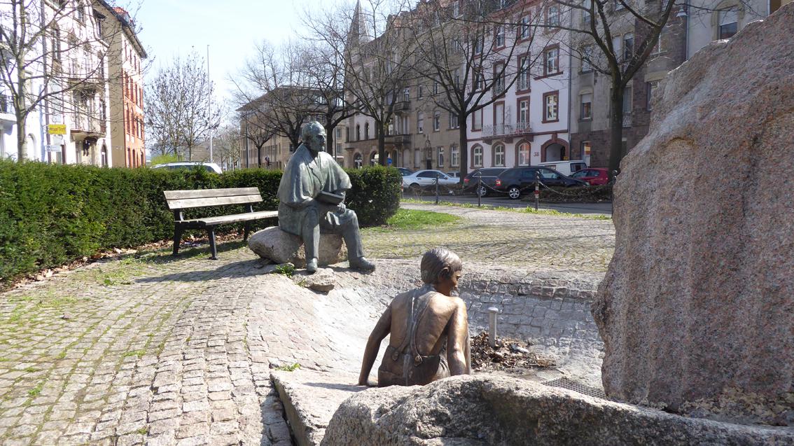 Die aus Findlingen der Natur, Bronzefiguren und Pflastersteinen bestehende Brunnenanlage ist dem großherzoglichen Baudirektor und Ingenieur Robert Gerwig gewidmet, der vor allem den Eisenbahnbau und die Wasserwirtschaft voranbrachte. Stifter war der Unternehmer und Oststadtbürger Frieder W. Herlan. Ausgeführt wurde das Werk von dem Acherner Bildhauer Walter Gerteis in einem erzählerischen Naturalismus.
