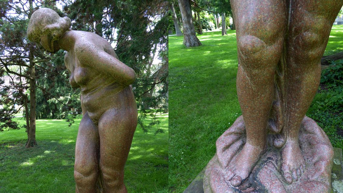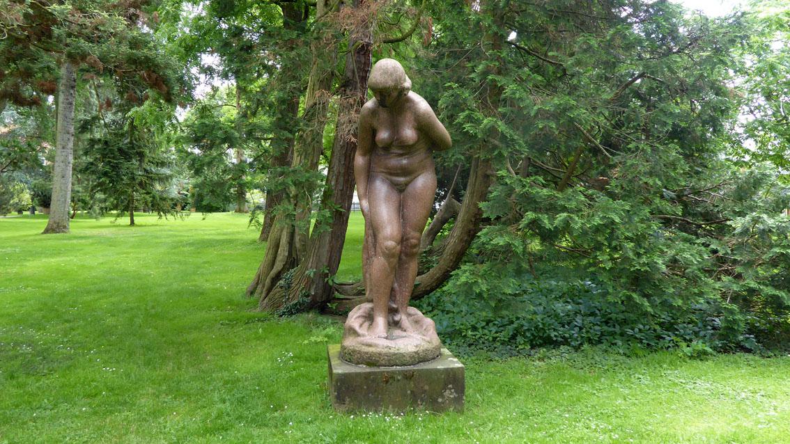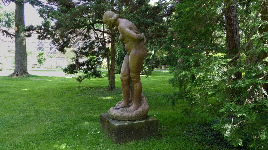Der Bildhauer lehrte bis zu seiner Entlassung durch die Nationalsozialisten im Jahre 1935 an der Staatlichen Akademie der Bildenden Künste Karlsruhe. Bekannt wurde er mit seinen sozialkritischen Werken aus den 20er Jahren des letzten Jahrhunderts. Repräsentative Werke befinden sich in der benachbarten Staatlichen Kunsthalle. Seine ‚Große Badende‘, eine Arbeit des Spätwerks, zeigt eine vollschlanke Frauengestalt, die sich in der Ausführung an klassischen Vorbildern orientiert.