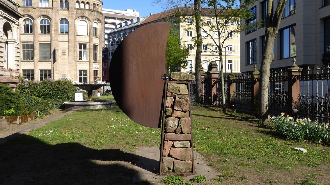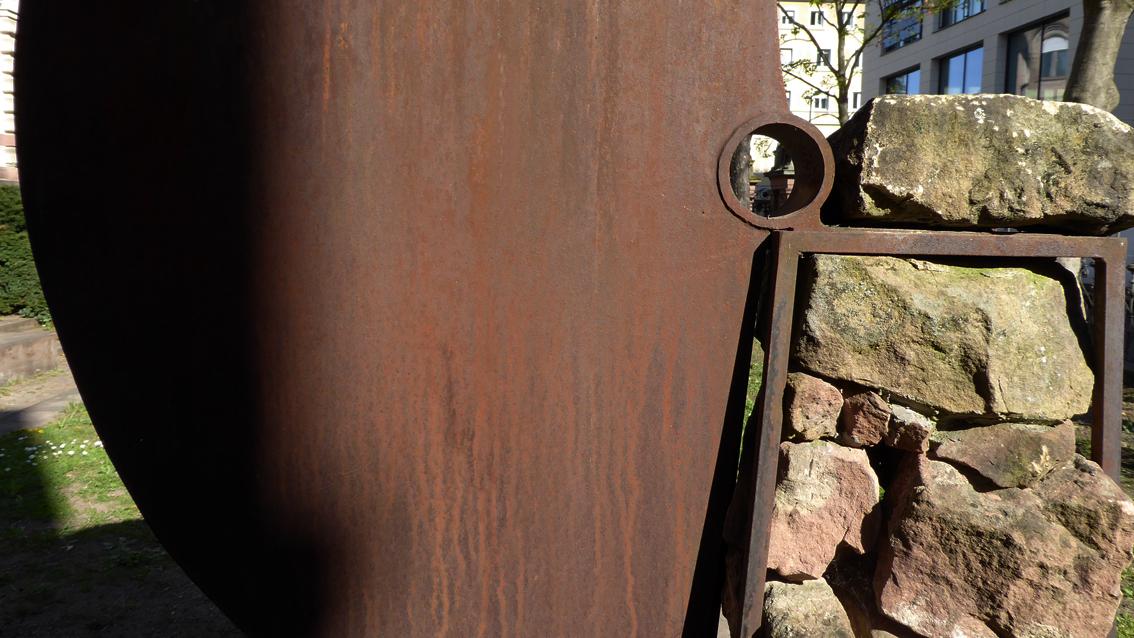 Der Künstler studierte bei Prof. Hans Kindermann an der Staatlichen Akademie der Bildenden Künste in Karlsruhe. Seine ‚große Zeremonienklinge‘ besteht aus einer halbmondähnlichen Form und einem Sockelrahmen, der mit Steinen gefüllt ist. Sockel und Form halten sich gegenseitig im Gleichgewicht. Würden die Steine entfernt, so schlüge die axtähnliche Klinge heftig gegen den Boden. Das Werk strahlt eine archaische Kraft aus.
