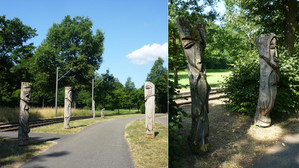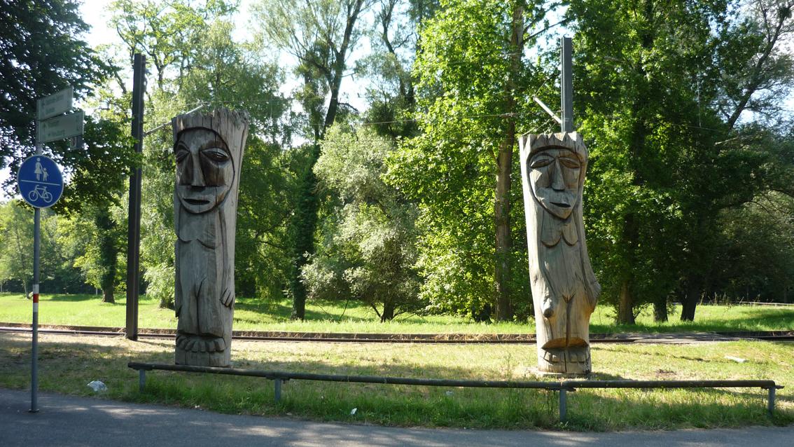 Zwischen der Zufahrt zum Naturschutzzentrum und dem Rheinstrandbad Rappenwört stellte Guntram Prohaska zwischen 1999 und 2000 ca. 38 Holzskulpturen unterschiedlicher Höhe, Breite und Tiefe auf. In einem expressiven Figurenstil, der die Kunst der Naturvölker zitiert, bearbeitet der Grötzinger Künstler mit der Kettensäge rohe Baumstämme.