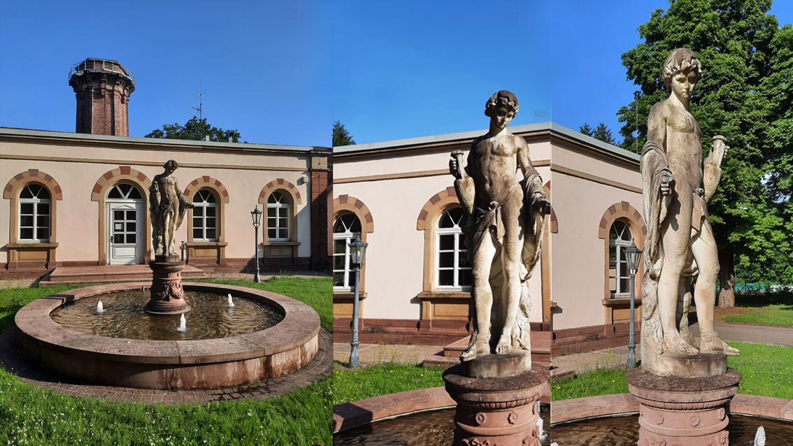 Die marmorne Figur befindet sich in der Mitte einer Brunnenschale aus Sandstein. Erhöht aufgestellt, empfängt Hylas die Besucher*innen des Brunnenmuseums mit einer zugewandten Geste. Der schöne Jüngling war Liebling des Herakles und Gefährte der Argonauten. Er ertrinkt, als er an einer Quelle Wasser holt. Die darin lebenden Nymphen sind fasziniert von seiner Schönheit und ziehen ihn zu sich unter Wasser. Auf der Suche nach Hylas vernimmt Herakles im Wald nur noch das Echo des Klagens seines Freundes... Ursprünglich gehörte die leicht bekleidete Figur zu einer komplexen Anlage, dem sogenannten Malsch-Brunnen. Namensgeber war Jakob Malsch, der von 1848 bis 1870 das Amt des Oberbürgermeisters inne hatte. Als formale und inhaltliche Inspirationsquelle diente für das ursprüngliche Brunnenprojekt die griechische Antike. Standort war die Nordostecke des Ettlinger-Tor-Platzes. Der Malsch-Brunnen wurde im Jahre 1963 abgetragen. Ausgerechnet Hylas mit seinem schweren Schicksal überlebte den Abbruch. Er wurde gerettet und entzückt nunmehr mit seiner Gegenwart die Menschen im Oberwald.
