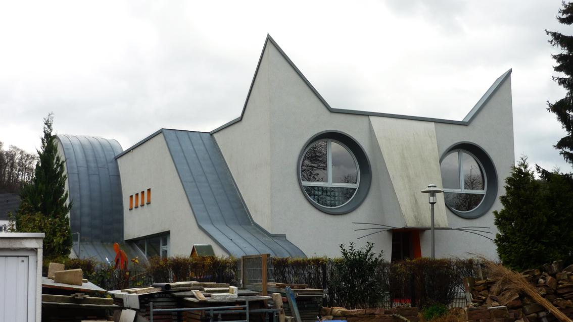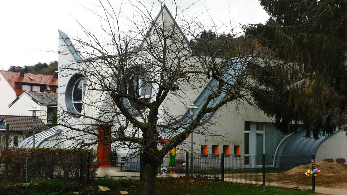 Der elsässische Künstler gestaltete die Außenhaut des Kindergartens in Wolfartsweier in Form einer ‚Katze auf der Pirsch‘. Der monumentalen Katze sitzt auf einem stählernen Gerüst ein ‚bunter Vogel‘ gegenüber. Die massive Architektur und die filigrane Konstruktion bilden einen starken Gegensatz. Tomi Ungerer fing diese Begegnung zwischen Groß und Klein mit viel Witz und Fantasie ein. Am 9. Februar 2019 verstarb der international hoch angesehene Künstler im Alter von 87 Jahren in Cork/Irland.