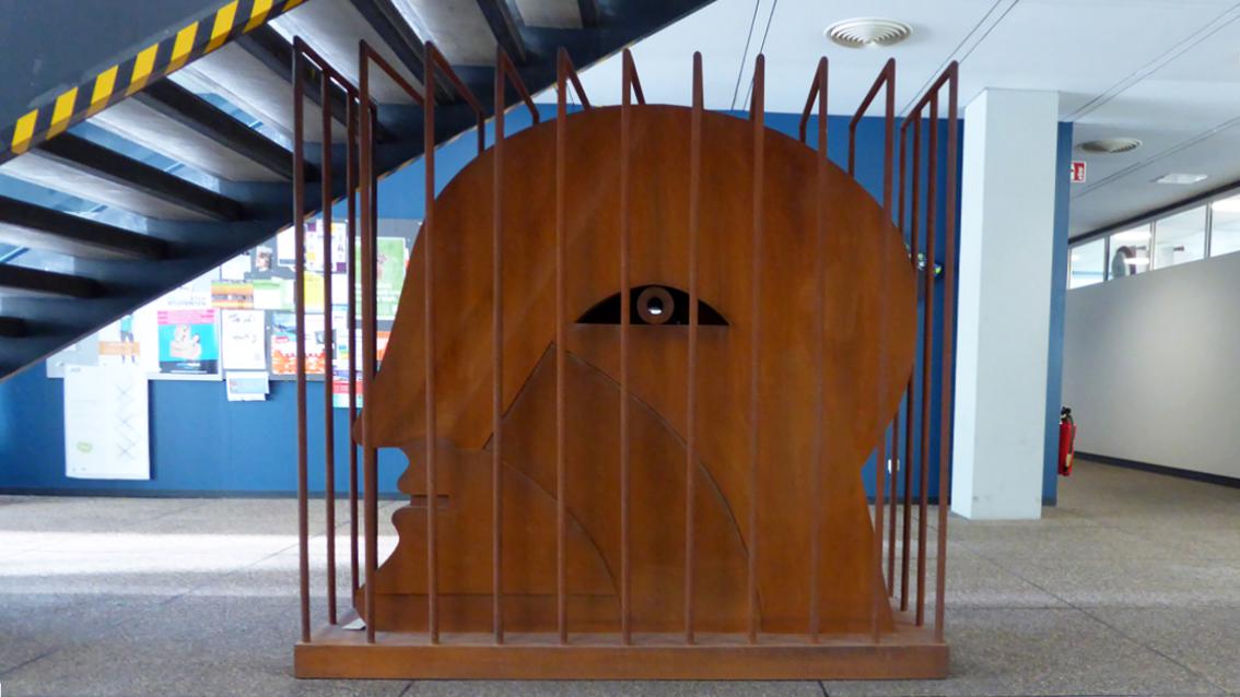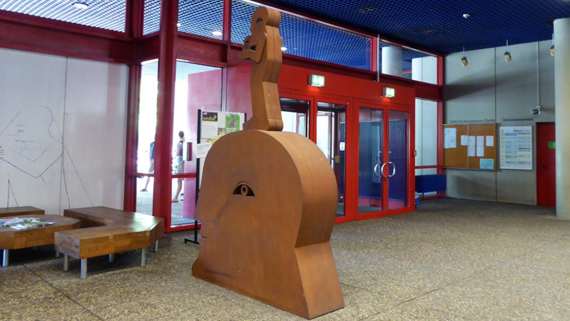 Die Köpfe des international anerkannten Künstlers und emeritierten Hochschullehrers befinden sich im Innen- und Außenbereich der Fakultät für Chemie am KIT. Sie werden ergänzt durch ‚Zeichnungen‘ mit schwarzer Farbe auf weißem Grund, die in einfacher Bildsprache vorrangig Körper und Hände zeigen. Die Plastiken sind aus Corten- und Chromnickelstahl gefertigt und umkreisen, symbol- und zeichenhaft verdichtet, das Thema ‚Kopf‘, das den Künstler seit Jahrzehnten beschäftigt.