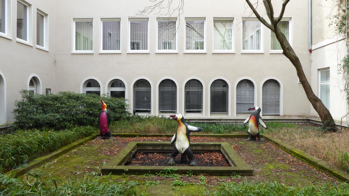 Zwischen 2006 und 2011 wurden unter der künstlerischen Leitung von Tina Zingraff mehrere Kunstvermittlungsprojekte im öffentlichen Raum verwirklicht. Gegenstand der Vorhaben war die Darstellung nicht heimischer, exotischer Tiere. Sie wurden mit Stahlgerüst, Ummantelung aus Schnellzement und Farbe gefertigt und vorwiegend vor Schulen aufgestellt. Die Ausführenden waren Schülerinnen und Schüler verschiedener Karlsruher Schulen. Unterstützt wurden sie von dem Kulturamt, dem ZKM, dem JUKS, dem Kinderbüro, dem Zoologischen Stadtgarten und einigen städtischen Ämtern. Eine Gruppe von farbig gefassten Pinguinen befindet sich im südlichen Innenhof des Rathauses. Sie sind wie eine Combo in Szene gesetzt. Jede Figur trägt individuelle Züge. Eine erscheint hochnäsig, die Andere verdreht. Der vorne platzierte Pinguin hat die schwierige Aufgabe, die bunte Truppe zusammenzuhalten...