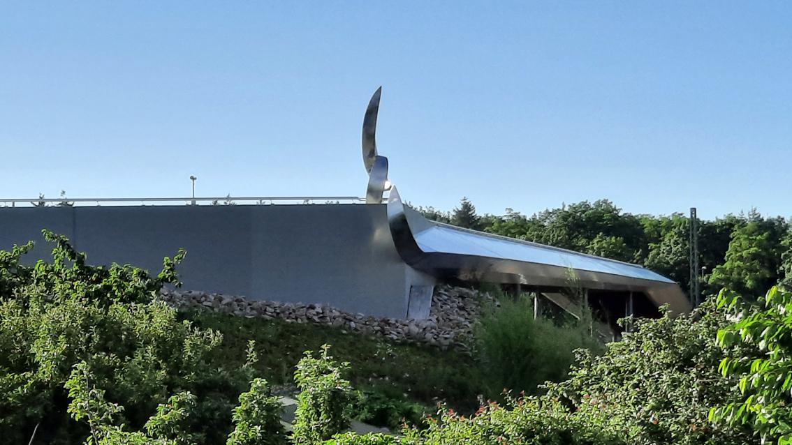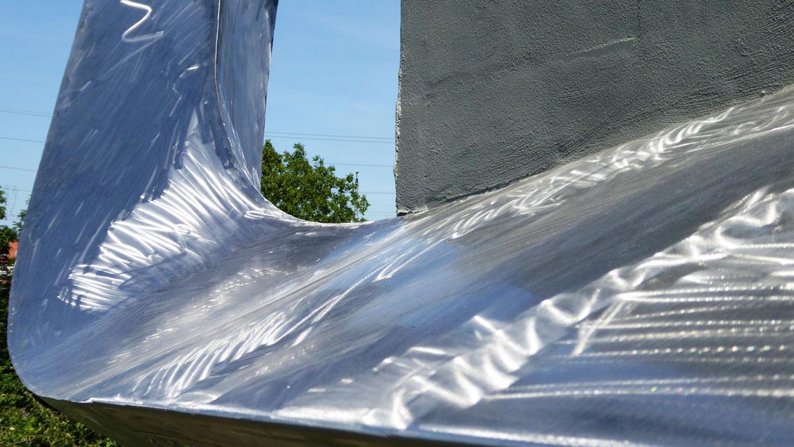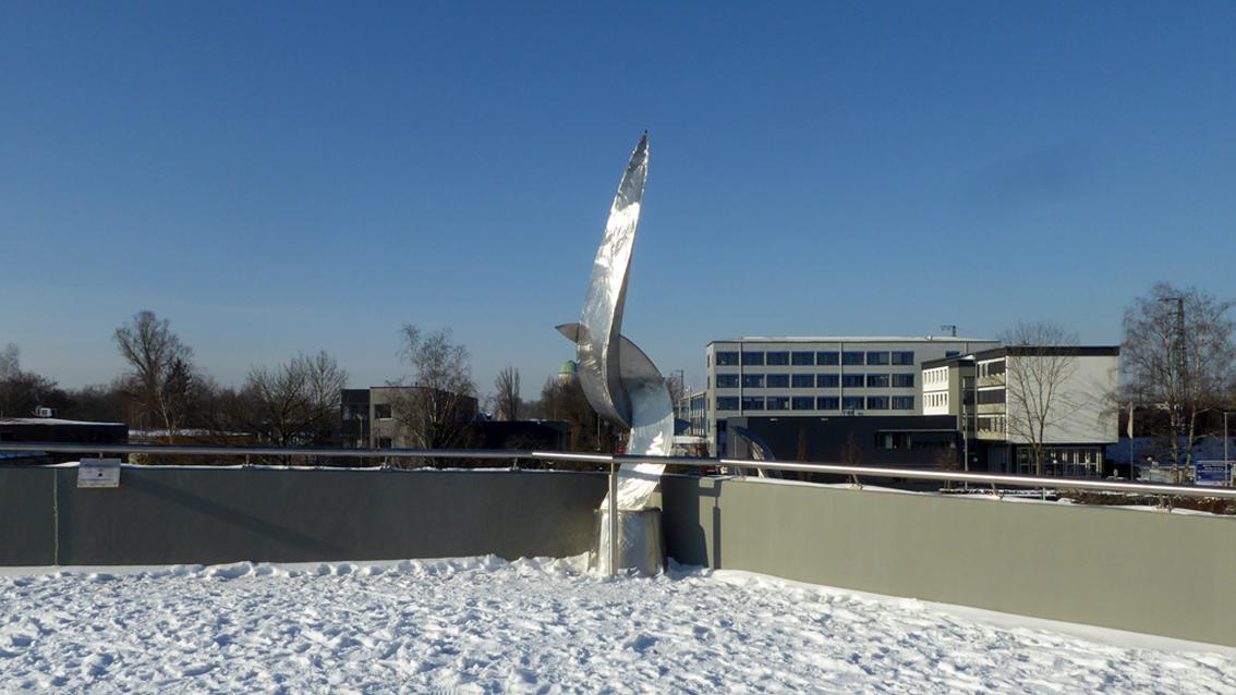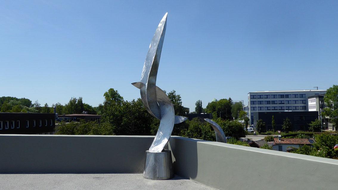Für den Neubau der Wasserwerkbrücke entwarf der Bildhauer eine zweiteilige Edelstahlplastik, die er auf der Nordseite der Brücke installierte. Formal greift der Künstler, der an der Staatlichen Akademie der Bildenden Künste ausgebildet und dort 1985 zum Meisterschüler ernannt wurde, einen Flächenverlauf der Brückenkonstruktion auf. Diesen lässt er in einer aufstrebenden, zugespitzten Teilform enden. Auf der begehbaren Seite der Brücke befindet sich die plastisch differenzierter durchgearbeitete Hauptform. Alle Teilflächen sind vom Künstler so geschliffen, dass eine Art Zeichnung mit eigenwilliger Handschrift entsteht. Die Installation startet ruhig um sich danach zu einer dynamischen Gesamtkomposition zu entwickeln, die den auf der Wasserwerkbrücke Flanierenden ein breites Spektrum an Deutungsmöglichkeiten eröffnet.