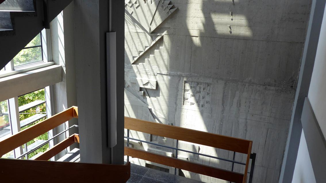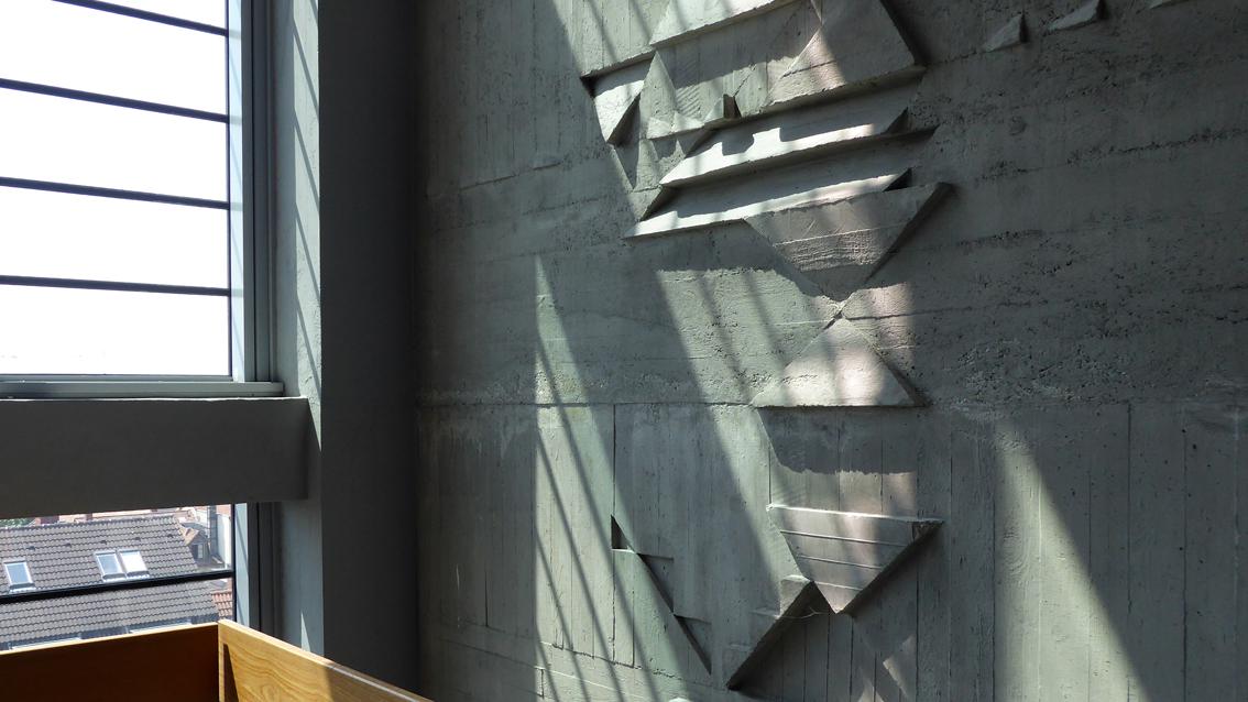 Die Reliefs des ehemaligen Rektors der Staatlichen Akademie der Bildenden Künste Karlsruhe sind ein repräsentatives Beispiel für die künstlerische Gestaltung von Architektur mit dem Werkstoff Beton. Die umfassende Wandgestaltung am Kollegiengebäude der Fakultät für Maschinenbau des KIT zitiert typische Strukturelemente der 60er Jahre des letzten Jahrhunderts. Die Reliefs im Innenbereich und an der Außenfassade beleben über ihren Reichtum an Formen den gesamten Gebäudekomplex. Der Maler und Bildhauer wurde 1928 in Heidelberg geboren und starb 2009 in Karlsruhe.