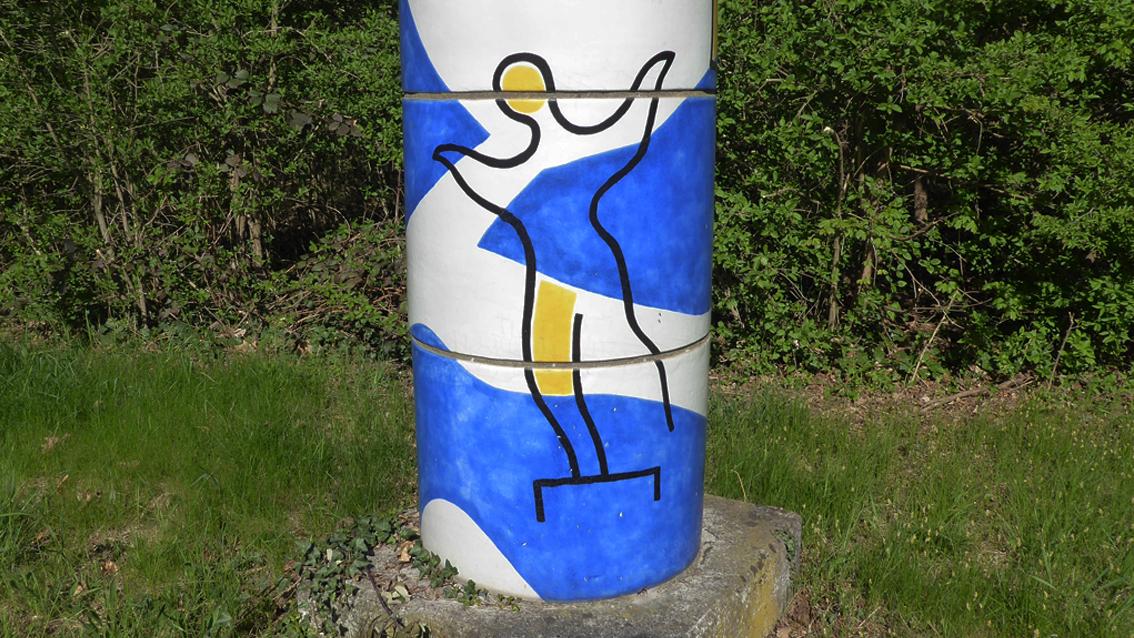 Die Säule des Keramikers markiert als schlankes, buntes Zeichen die Stelle, an der sich entlang der Willy-Brandt-Allee die Zufahrt zur Staatlichen Majolika Manufaktur Karlsruhe befindet. Eben dort aus Ton gefertigt, gebrannt und glasiert und in einer einfachen Formensprache sowie dekorativen Farbigkeit zur Säule gefügt, weist diese als Zeichen am Straßenrand den Weg zum Ort ihrer Herstellung.