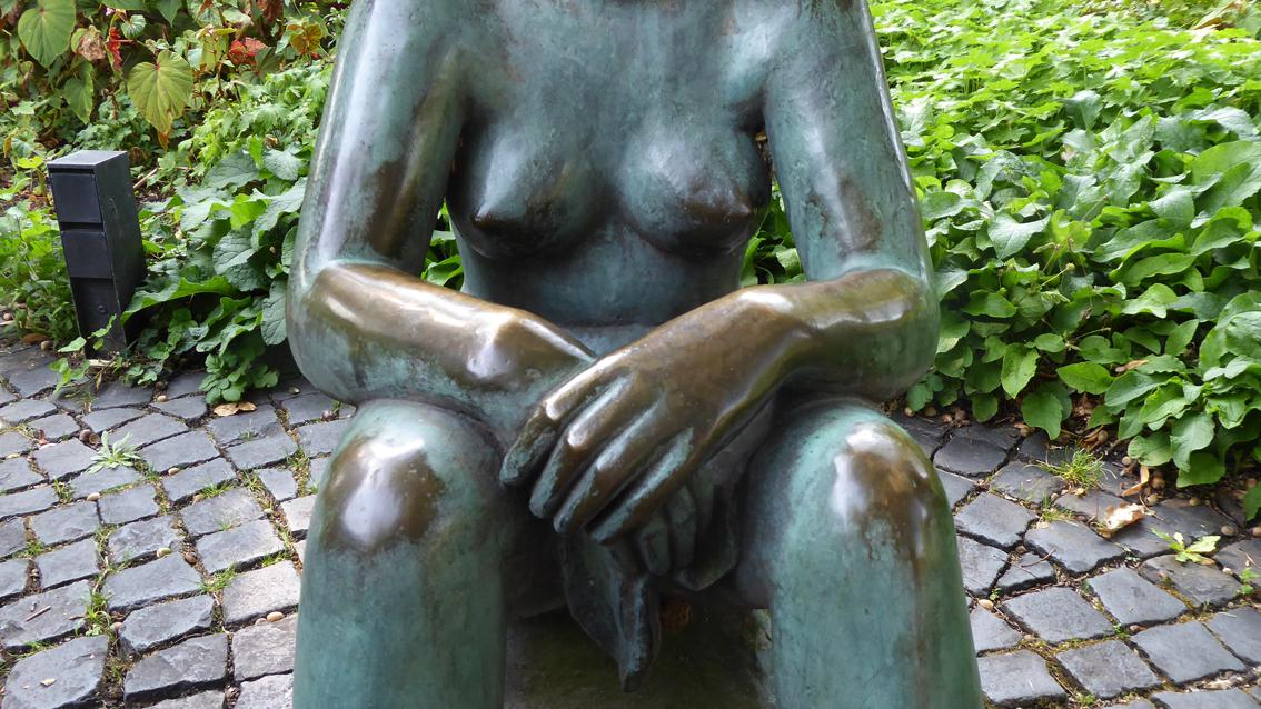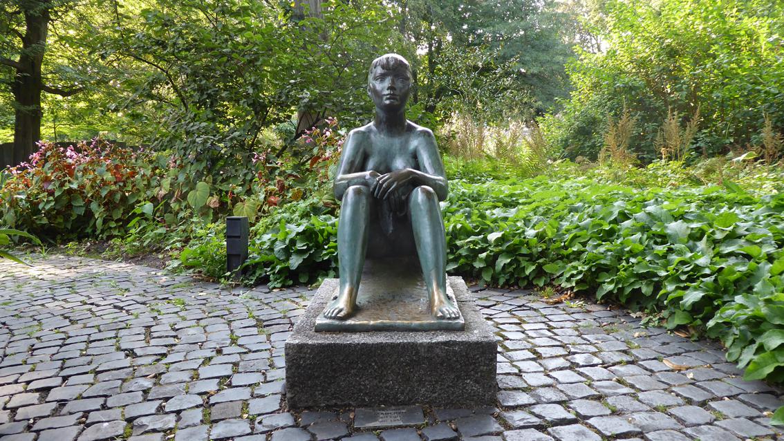 Das etwas unterlebensgroße Mädchen sitzt nahezu unbekleidet auf einem niedrigen Sockel, den Blick in eine unbestimmte Ferne gerichtet. Die Körperformen sind vereinfacht dargestellt, die Komposition ist fast symmetrisch. Naturnahe Gegenständlichkeit und eine gewisse Tendenz zur Abstraktion begegnen sich in dieser Bronzearbeit, die somit ein typisches Beispiel der Kunst im öffentlichen Raum der 50er Jahre des vergangenen Jahrhunderts ist.