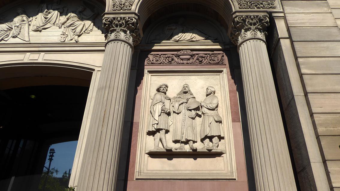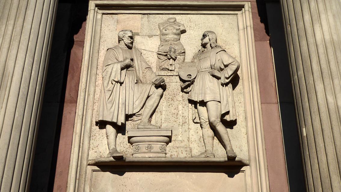 Der badische Bildhauer Franz Xaver Reich wurde gegen Ende der 30er Jahre des 19. Jahrhunderts beauftragt, für die von Heinrich Hübsch entworfene und errichtete Kunsthalle das Eingangsportal mit überlebensgroßen Allegorien der Malerei und Bildhauerei zu gestalten. Die ergänzenden Reliefs sollten nach eigenständigen Ideen des Künstlers auf die Nutzung und den Zweck des Gebäudes verweisen. Zwischen 1837 und 1845 war Reich mit dem Entwurf und der Realisierung des Skulpturenprogramms beschäftigt. Im Jahre 1846 wurde die Kunsthalle von Karl Leopold I. Friedrich von Baden feierlich eröffnet. Der Künstler studierte am Städelschen Institut in Frankfurt Bildhauerei bei Johann Nepomuk Schelble.