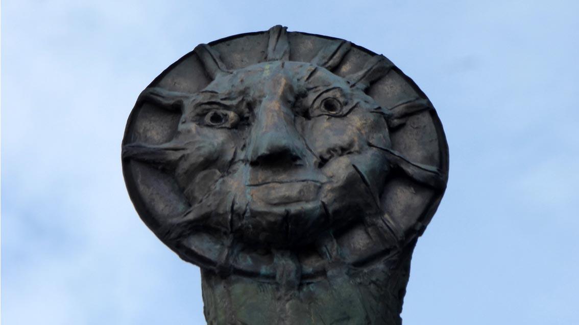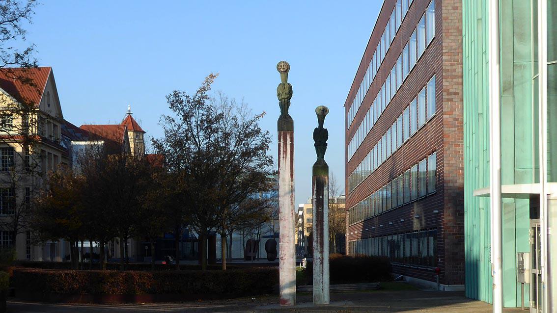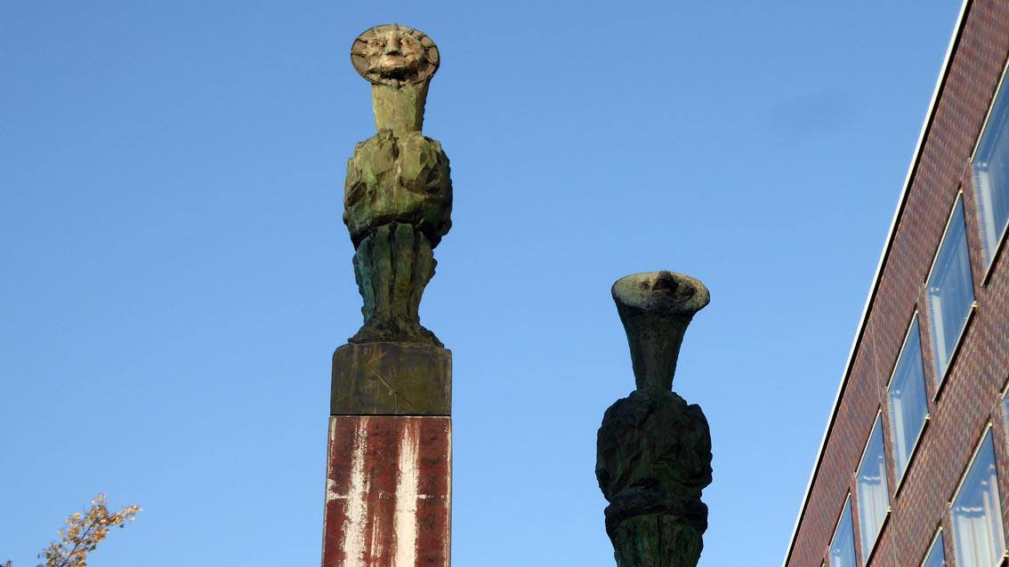 Das plastische Ensemble des Künstlers mit internationalem Ruf wurde wegen der Theaterbaustelle im Dezember 2019 abgebaut. Seit September befinden sich Sonne und Mond auf dem Skulpturenboulevard, nahe der Städtischen Galerie und dem ZKM. Der Maler und Bildhauer, der von 1974 bis 1987 an der Staatlichen Akademie der Bildenden Künste Karlsruhe lehrte, setzte seine Deutungen von Sonne und Mond auf hohe Pfeiler, sodass man sie aus Untersicht betrachtet. Die Sockel sind mit einem dunklen Rot auf weißgrauem Grund bemalt. Auf diesen befinden sich die zwischen figürlich und abstrakt gehaltenen und in Bronze gegossenen Personifikationen von Mond und Sonne.