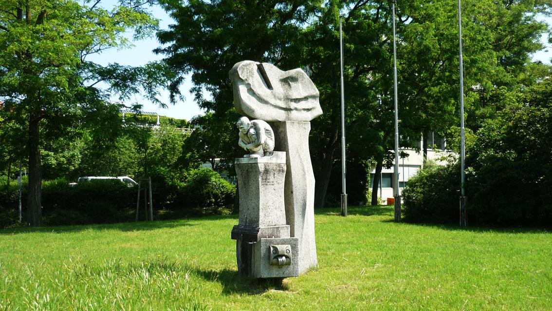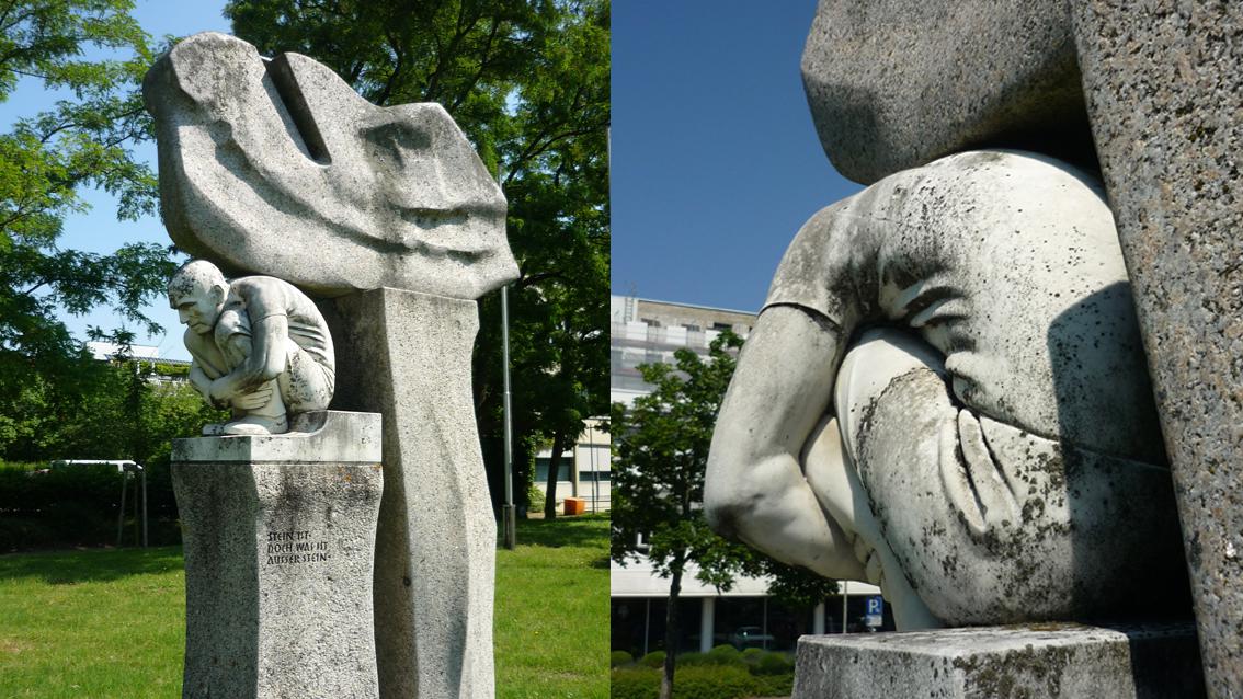 Der Karlsruher Steinbildhauer studierte bei Prof. Wilhelm Loth an der Staatlichen Akademie der Bildenden Künste Karlsruhe. 1987 realisierte er im Rahmen eines Kunst-am-Bau Wettbewerbs anlässlich des Neubaus der Elisabeth-Selbert-Schule eine Skulptur mit figürlichem Kern. Die im Titel angedeutete Frage scheint in Form einer gewaltigen Steinlast die nachdenkliche, kauernde Figur fast zu erdrücken. Marmor (Figur) und Granit (Umgebung) bilden einen, die bedrohliche existentielle Lage noch steigernden Gegensatz.