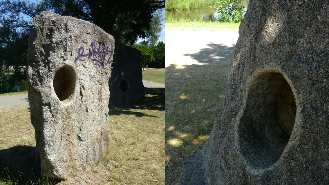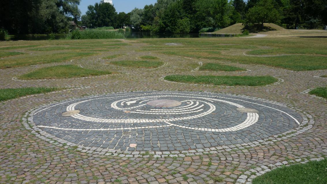 Die mehrteilige Arbeit der Künstlerin wurde 1989 in der Günther-Klotz-Anlage, einem stadtnahen Erholungsgebiet im Südwesten von Karlsruhe installiert. Sie besteht aus einem weitläufigen, begehbaren Labyrinth aus unterschiedlich farbigen Pflastersteinen und zwei Klangsteinen. Diese sind Findlinge aus der Natur, die von Bildhauerinnenhand in einer reduzierten Formensprache so bearbeitet wurden, dass beim Hineinlauschen in die Durchbrüche bei entsprechenden Windverhältnissen ein leises Summen vernehmbar ist. Nach einem langen Leben ist die Künstlerin am 16. März 2022 in Heidelberg verstorben. Sie wurde 96 Jahre alt.