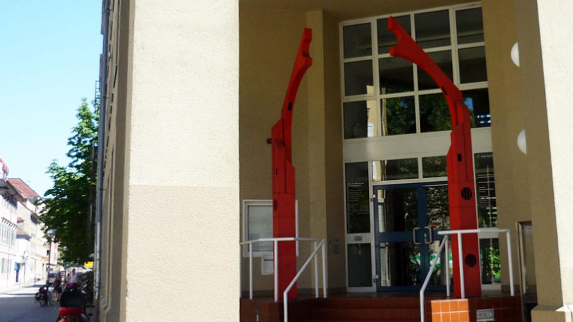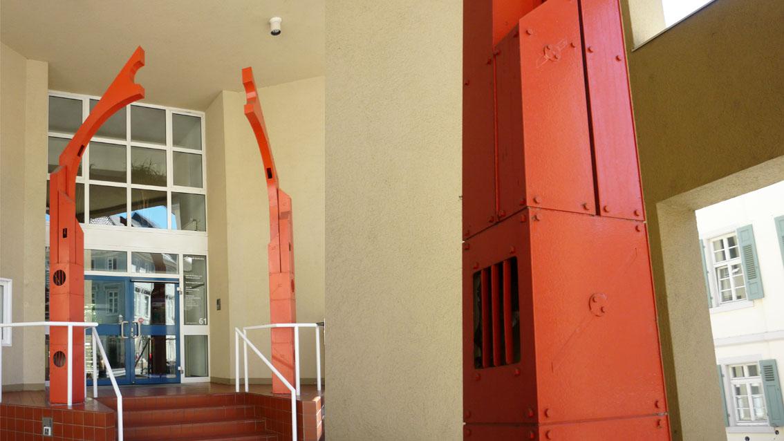Die Plastik des Schweizer Architekten und Künstlers, der an der Staatlichen Akademie der Bildenden Künste Karlsruhe lehrte, befindet sich im Eingangsbereich des Amtes für Hochbau und Gebäudewirtschaft. Zwei rot lackierte Türme bilden ein Tor, das die Ankommenden mit einer plastischen Geste der Offenheit begrüßt. Die beiden Türme sind mit Öffnungen versehen, die den Blick ins Innere erlauben. Walter M. Förderer starb am 29. Juni 2006.