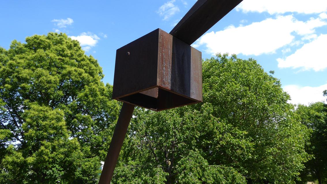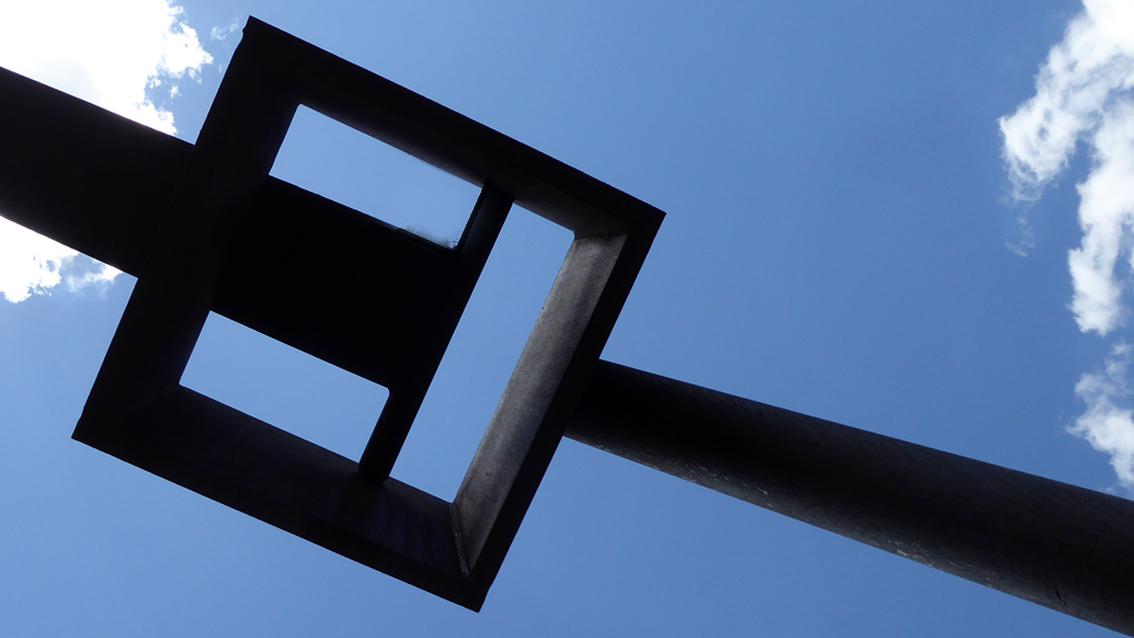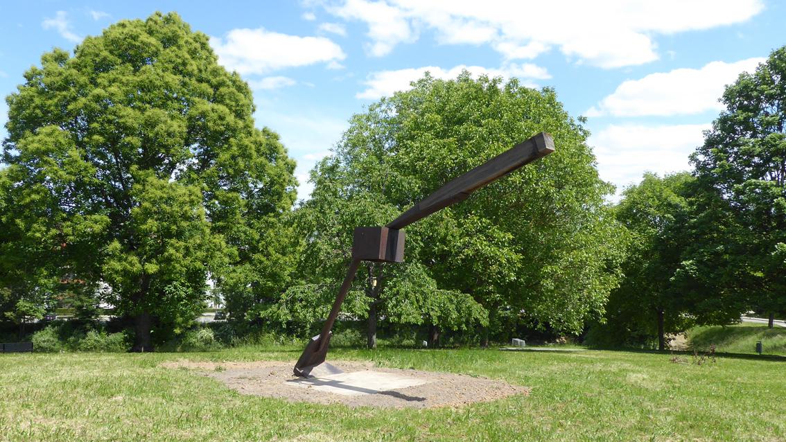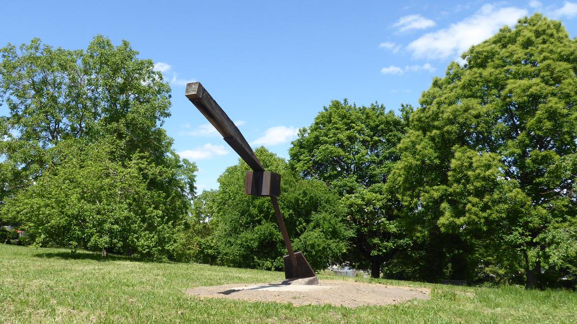 Das Spiel von Stabilität und Labilität prägt die Plastik 'Vitale Form' von Franz Bernhard, der an der Staatlichen Akademie der Bildenden Künste Karlsruhe bei Prof. Wilhelm Loth studierte. 1977 war er auf der Dokumenta 6 in Kassel vertreten. Im Jahre 2013 verstarb der Pfälzer Künstler in Jockgrim. "Ich gestalte Übergänge. Ich mache Dinge. Meine Dinge greifen in den Raum. Ich gestalte Räume", so äußerte sich der Bildhauer einfach und bestimmt. Besser kann man das elementare, von archaischer Kraft und spröder Anmut bestimmte Werk des Franz Bernhards nicht umschreiben. Wegen der Sanierung des Theaters und des Neubaus des Schauspielhauses wurde die Plastik im Dezember 2019 in der Südstadt abgebaut. Der neue Standort befindet sich seit Mai 2020 im Lustgarten des Stadtteils Hohenwettersbach.