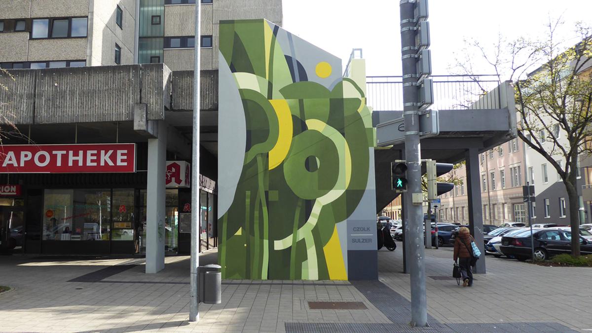 Kriegsstraße/ Ritterstraße ein monumentales abstraktes Wandbild,
