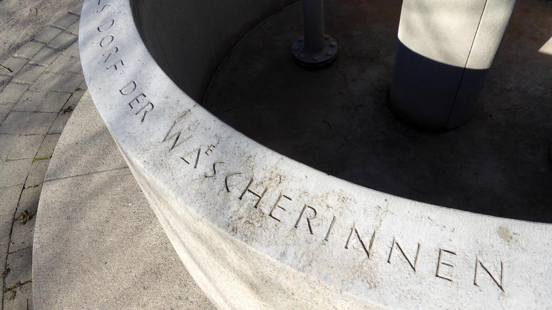 Der Wäscherinnenbrunnen des Karlsruher Steinmetz und Bildhauers Gerhard Karl Huber würdigt die Frauen Bulachs, die früher neben der Landwirtschaft einen Teil des Einkommens dazu verdienten, indem sie die Wäsche der Städter machten. Diese Tatsache unterstreicht auch die Inschrift am steinernen Becken: ‚Bulachs Ruhm als Dorf der Wäscherinnen entstand durch den Fleiß seiner Frauen, das weiche Albwasser und seine stadtnahe Lage‘. Gerhard Karl Huber lebte von 1941 bis 2023.