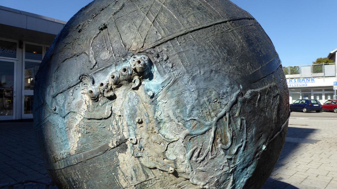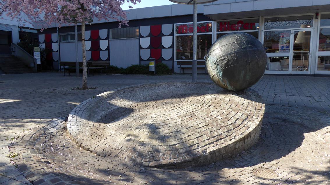 Auf dem höchsten Punkt einer gepflasterten Schräge befindet sich die bronzene Weltkugel der badischen Bildhauerin Gudrun Schreiner, die ab 1958 an der Münchner Kunstakademie studierte, Bildhauerkurse bei Marino Marini (Mailand) und Ossip Zadkine (Paris) belegte, ab 1965 ein städtisches Studio im Atelierhaus Stresemannstraße innehatte und im Jahre 2012 in Ottersweier verstarb. Der Siemenskonzern gab das Werk in Auftrag, das in seiner einfachen Bildsprache die weltweiten Verbindungen der Firma symbolisieren soll.